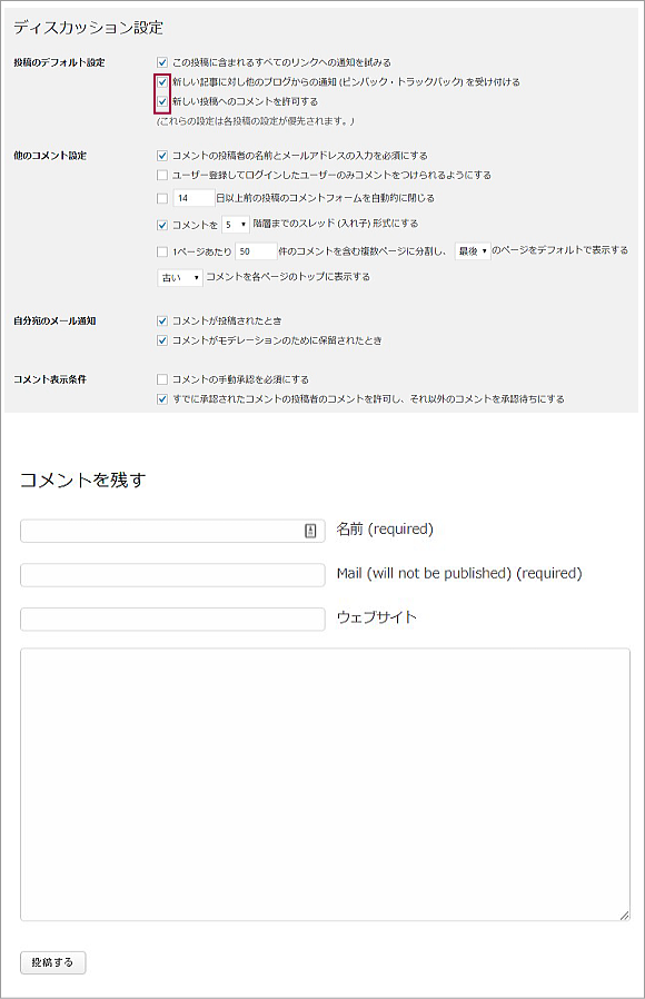 ディスカッション設定|WordPress初期設定