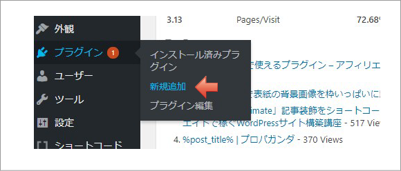 「プラグイン」>「新規追加」をクリックします。