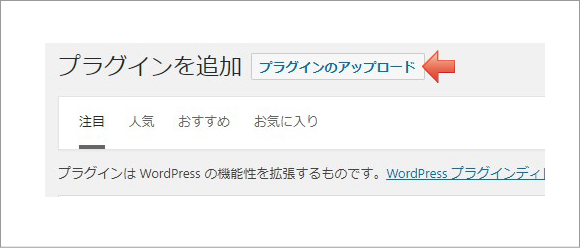 「プラグインのアップロード」をクリックします。
