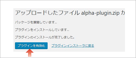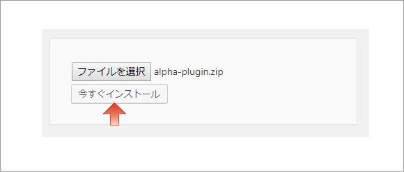 手順2でダウンロードしたalpha-plugin.zipを選択し、「今すぐインストール」をクリックします。