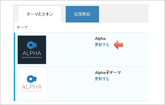 Alphaの「更新する」をクリックします。