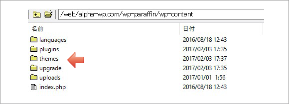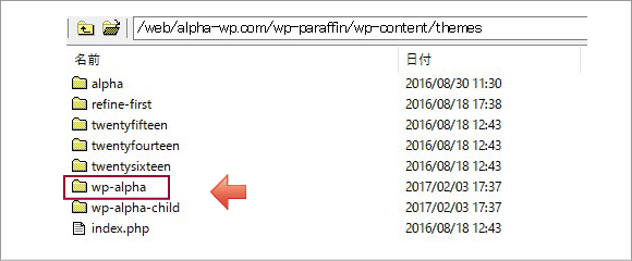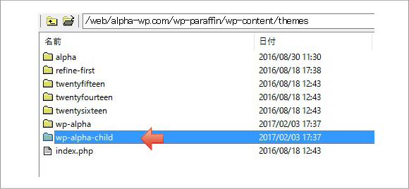 「themes」フォルダーの「wp-alpha-child」を開きます。