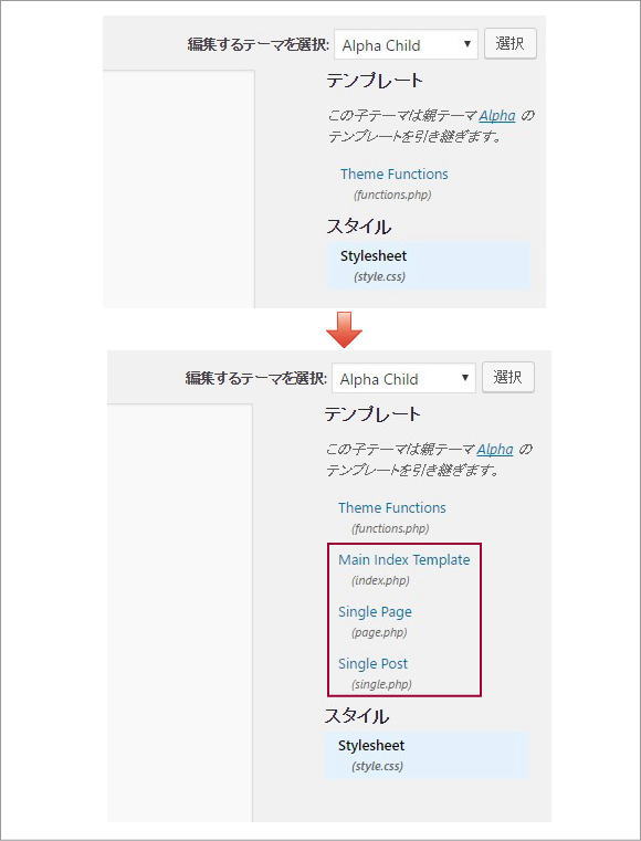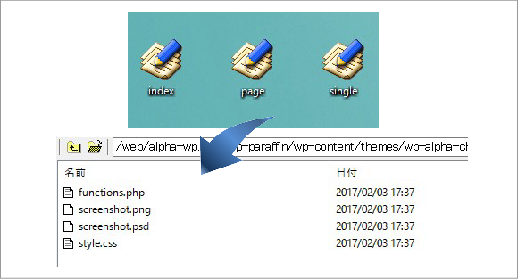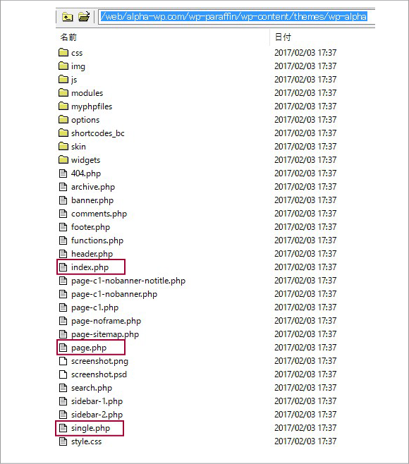 ALPHA本体と子テーマに同一名称のファイルがある場合