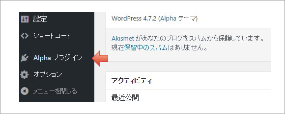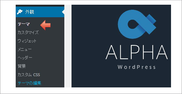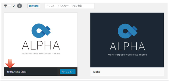 ALPHA子テーマが有効化されているか確認します。されていない場合は有効化しましょう。