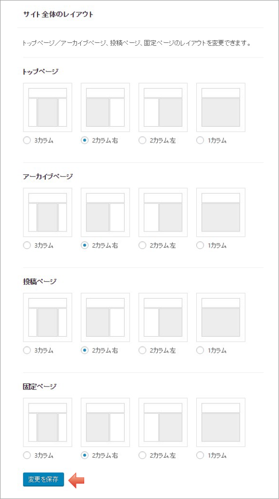 各ページのレイアウトを選ぶことができます。最後に「変更を保存」をクリックします。