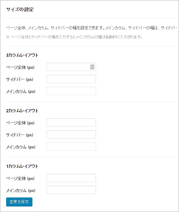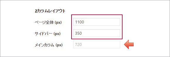 ページ全体とサイドバーの幅を入力するとメインカラムの幅は自動的に入力されます。