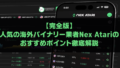 機能海外バイナリー業者「Nex Atari:ネックスアタリ」の機能、特徴、メリットまとめ Nex Atari(ネックスアタリ)は「オプション取引をより安全・スマートに」を掲げるオンライン取引プラットフォームで、短時間取引(例:10秒などの超短期)、固定リスク設計、透明な価格設定が大きなメリットのサービスです。 そして、取引...2025.12.15機能